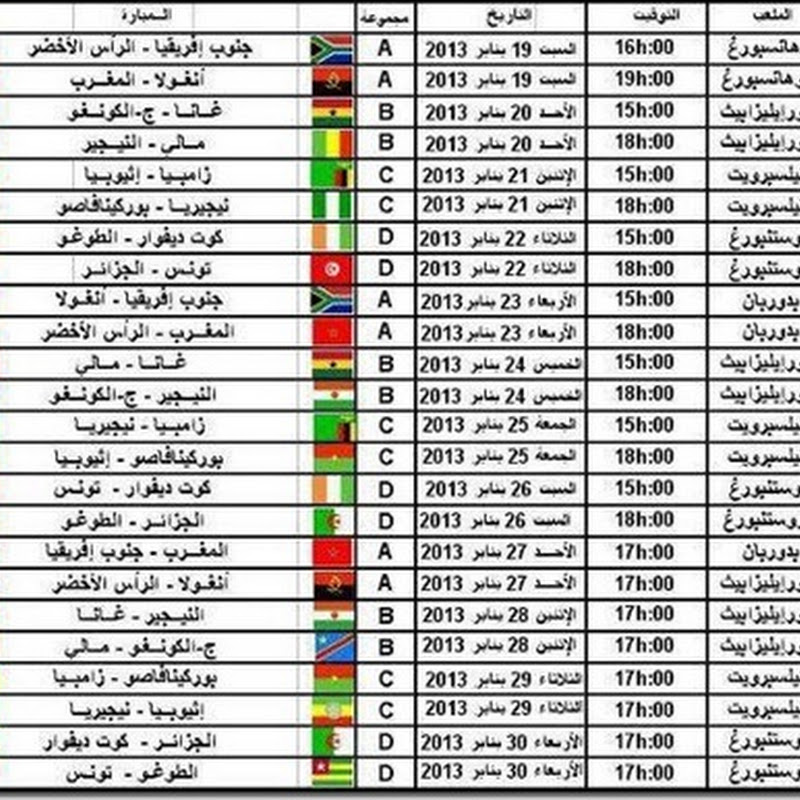 جدول مباريات دور المجموعات من منافسات كان 2013,آخبار الكان,رياضة,مبارات الجزائر تونس,مواعيد مباريات الكان 2013
